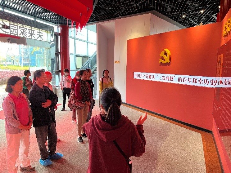 接着,老同志们踏入了红色党建乡村振兴馆,这是一次让他们深切领略我党对农民利益的高度关切的机会。从解决“三农问题”到如今的乡村振兴,这里展现着党对广大百姓的深厚情感和扎实政策支持。老同志们在这里感受到了党的关怀之情,仿佛是漫步在红色记忆的画卷中。