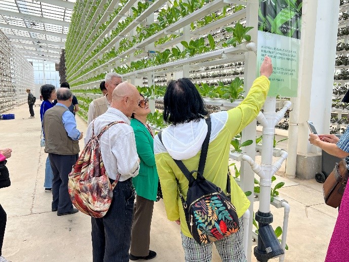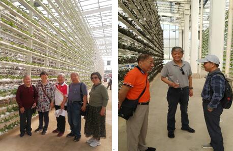 在蔬菜立体培育的厂房内,老同志们深切地体验到了现代农业发展的飞速进展,就如同秋风扶摇、秋叶舞动,生机勃发。他们在讲解员的引领下,了解了整个培育过程,宛如走进了一首生命之歌的副歌,收获着知识的果实,收获着对农业的敬佩。