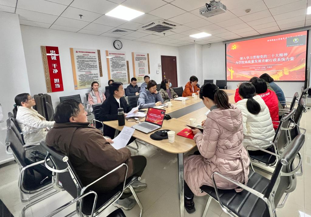 在交流学习两封回信的体会时,学院行政党支部宣传委员李毅在发言中表示,贯彻党的二十大精神要与师德师风建设紧密结合,两封回信对全体教职工在坚持立德树人推动科技自立自强上再创佳绩、在坚定文化自信讲好中国故事上争做表率提出了要求,作为学院行政人员,就是要为教职工搞好高质量的服务保障,按照学院行政“热情、主动、细致、高效、规范”的标准,让学生满意、让教师满意、让领导满意;作为辅导员,要做学习的知心朋友,梳理一个很好的形象,让学生信赖自己、依靠自己,教育全体学生听党的话,跟党走,刻苦学习掌握真本领,毕业后到祖国和人民最需要的地方去建功立业。