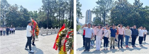 庄严宁静的麻城市革命烈士陵园松柏苍翠,黄麻起义和鄂豫皖苏区革命烈士纪念碑巍然耸立。在肃穆的氛围中,党员张家琦、张孟代表大家向烈士纪念碑敬献鲜花,全体参加培养人员以鞠躬默哀的形式向革命先辈致以最崇高的敬意。全体党员同志面向党旗,重温入党誓词,字字铿锵,句句千钧,庄严的承诺深深地镌刻在每一名同志的心中。